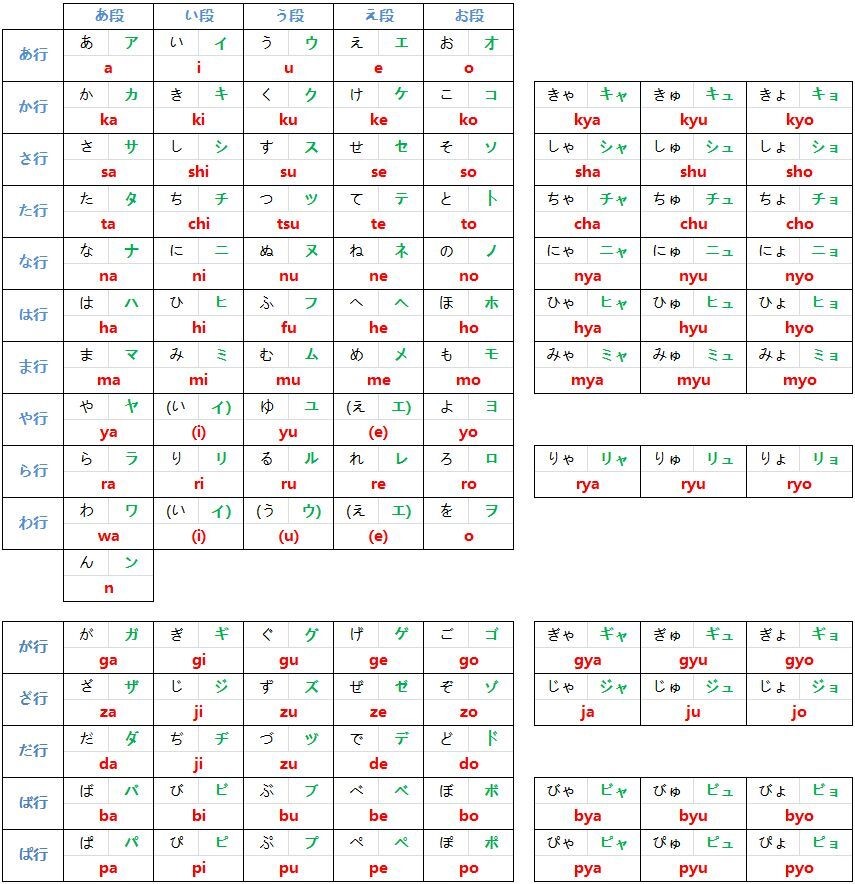 学习五十音图时制作的表格。