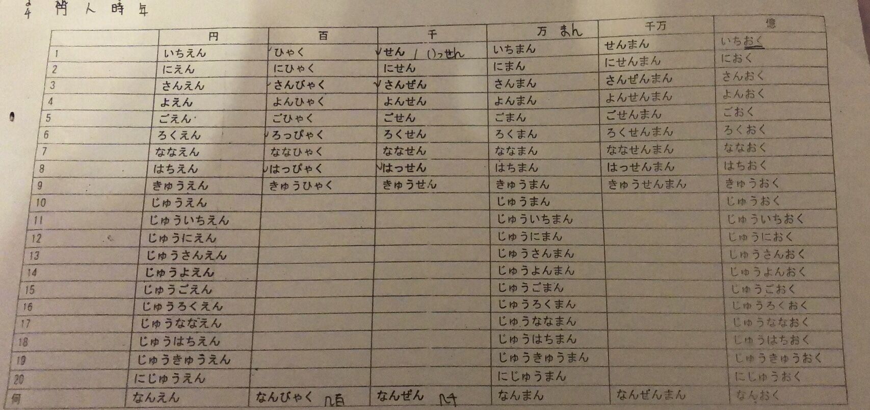 学习日语“多少元”的表达时总结的表格。